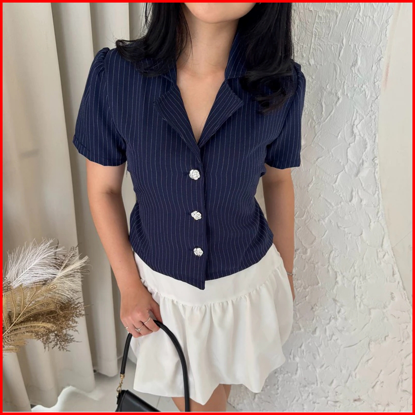 Kemeja Crop Wanita Terbaru Korean Style Kekinian Lengan Pendek