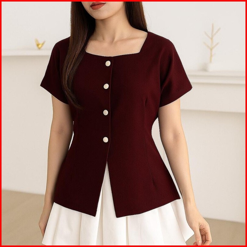 Elyse Soren Top Atasan Lengan Pendek Avery Top Wanita Modis Simple Bahan Nyaman Cocok Untuk Gaya Casual Dan Formal Baju