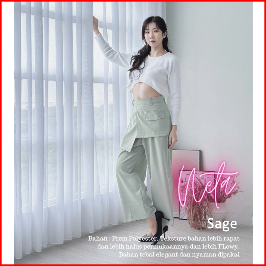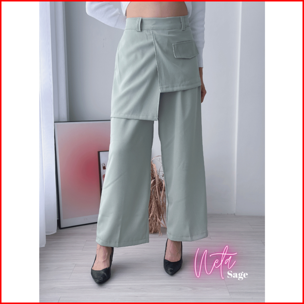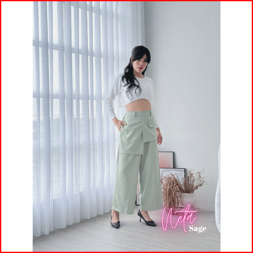 Celana Neta Highwaist Loose Pants Trousers Celana Kerja Wanita Kantor Celana Anti Kusut Celana Kulot Wanita Kancing Samp