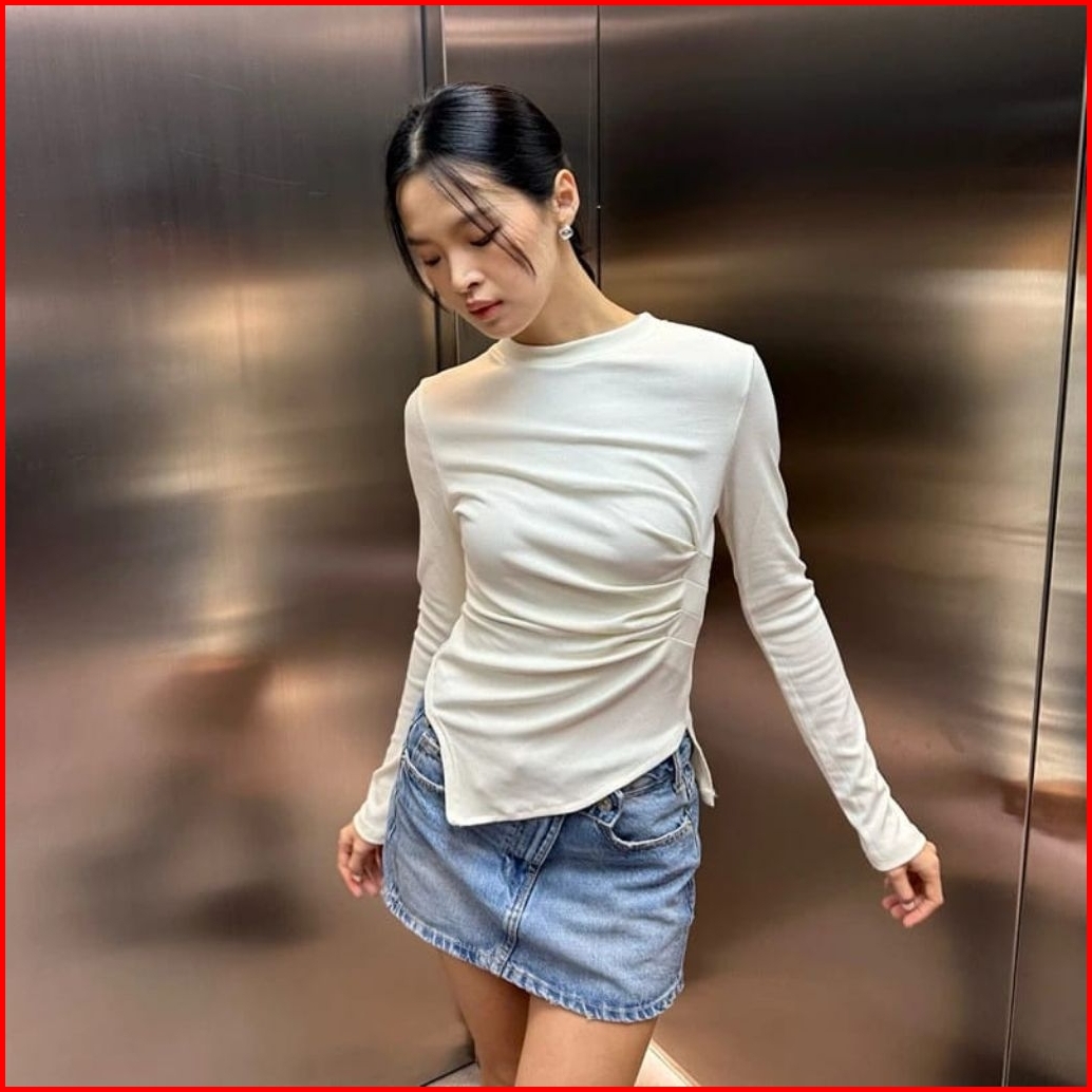 Jube Top - Atasan Basic Longsleeves Top Scrunched Blouse Baju Lengan Panjang Wanita Rib Knit