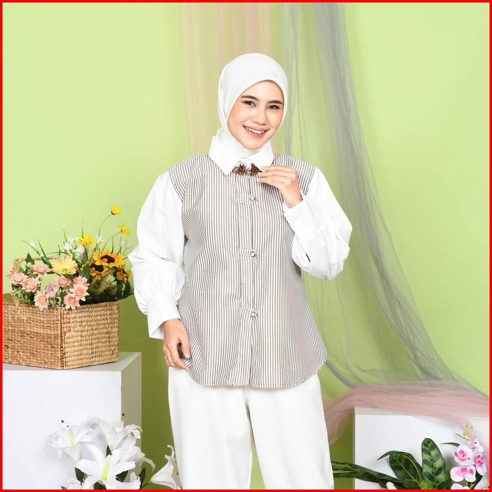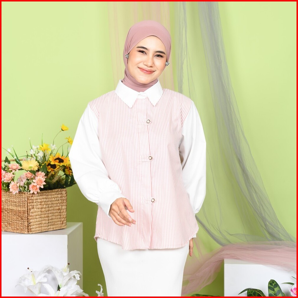 Mybamus X Syarifahkhairatunnisa Sweetiepie Blouse Kemeja Kombinasi Wanita Lengan Panjang Kekinian