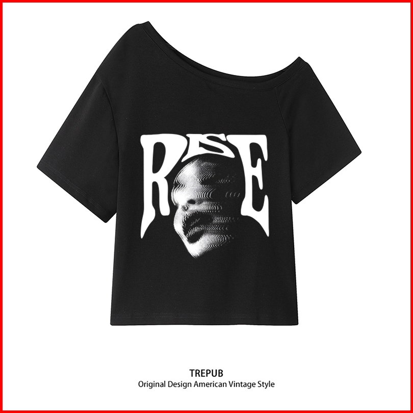 Readybaju Atasan Wanita Terbaru Amerika Y2k Pola Trendi Putih Cetak Kaos Lengan Pendek Wanita Retro Streer Vintage Ahs S