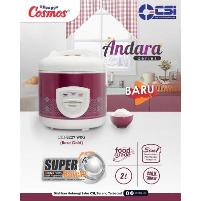 MAGIC COM COSMOS 1.8 LITER RICE COOKER CRJ8229 CRJ-8229 CRJ 8229 2LITER 3 IN 1 ORIGINAL TERBARU MURAH TERLARIS 2026