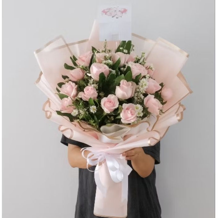 Buket bunga mawar pink soft asli dan fresh Hadiah anniversary