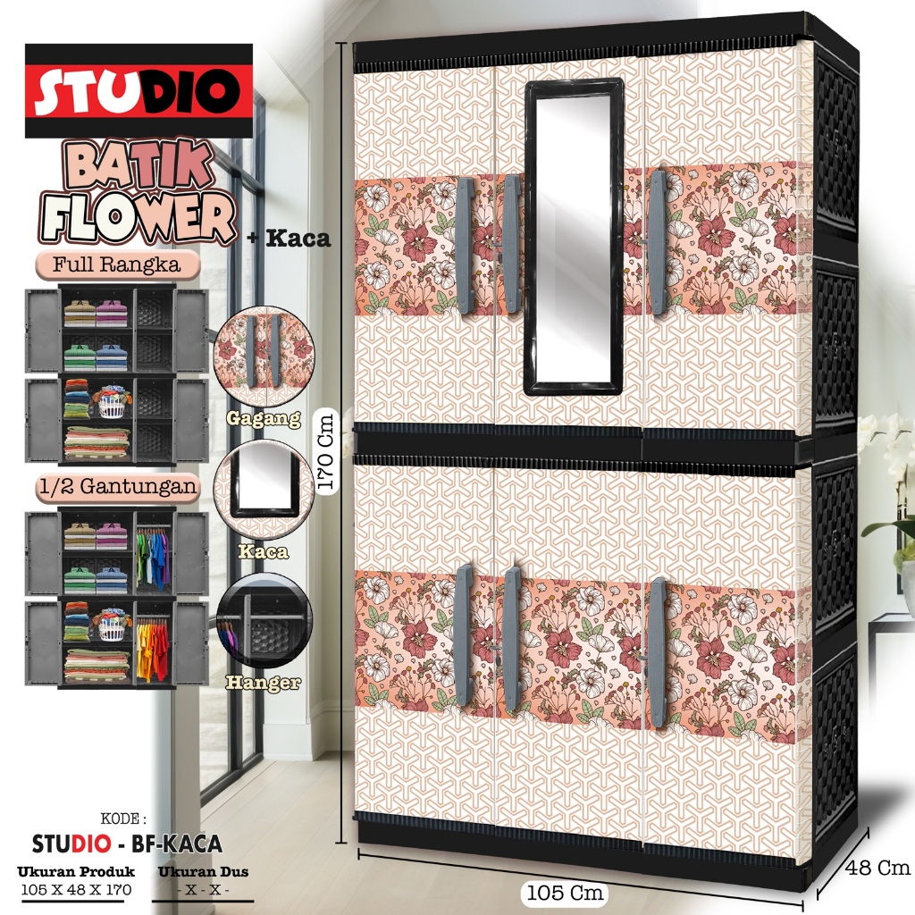 LEMARI PAKAIAN PLASTIK 3 PINTU JUMBO BESAR GANTUNGAN KACA STUDIO