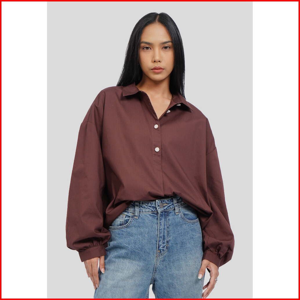 Executive Loose Ballon Sleeves Blouse Brown