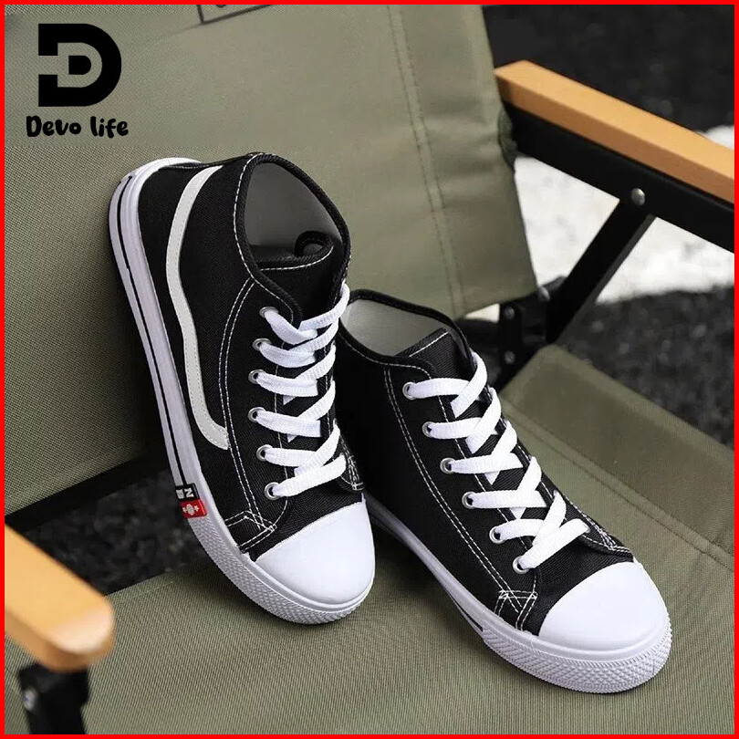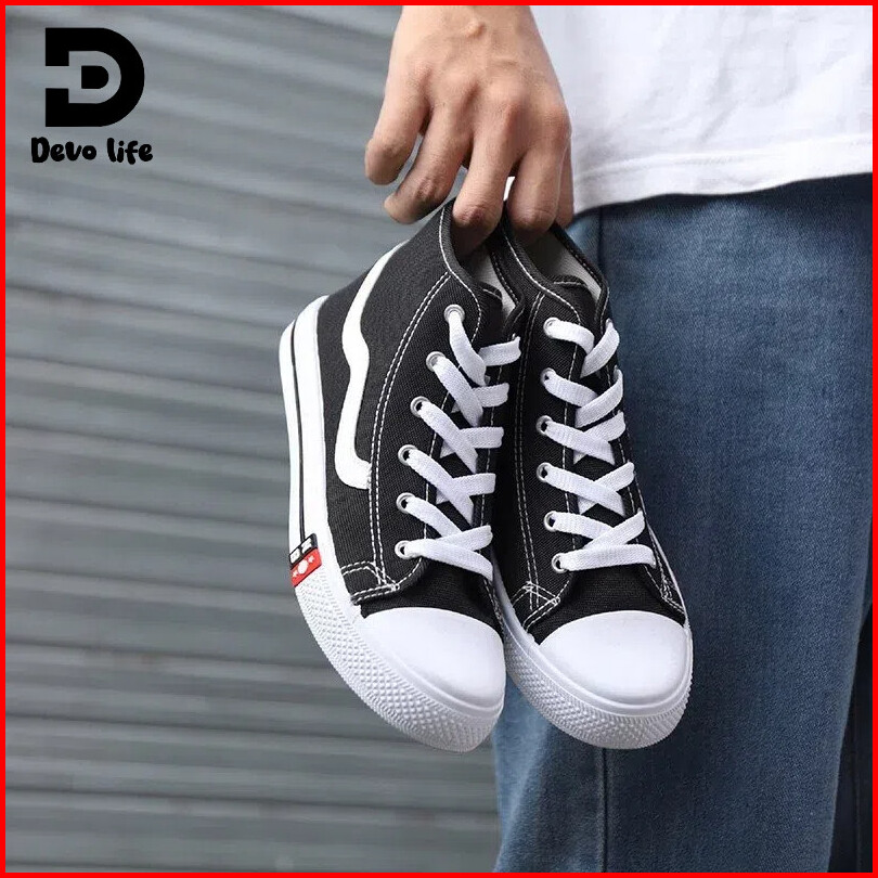 Devo Life - Sepatu Sekolah Anak Laki Laki Perempuan Sneakers Hitam Polos 34-43