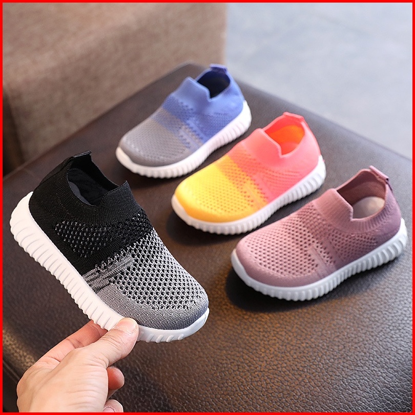 Lvr Free Box Anak Usia 2-10 Sepatu Slip On Anak Rajut Gradasi Kasual Kanvas Bernapas Lv0298