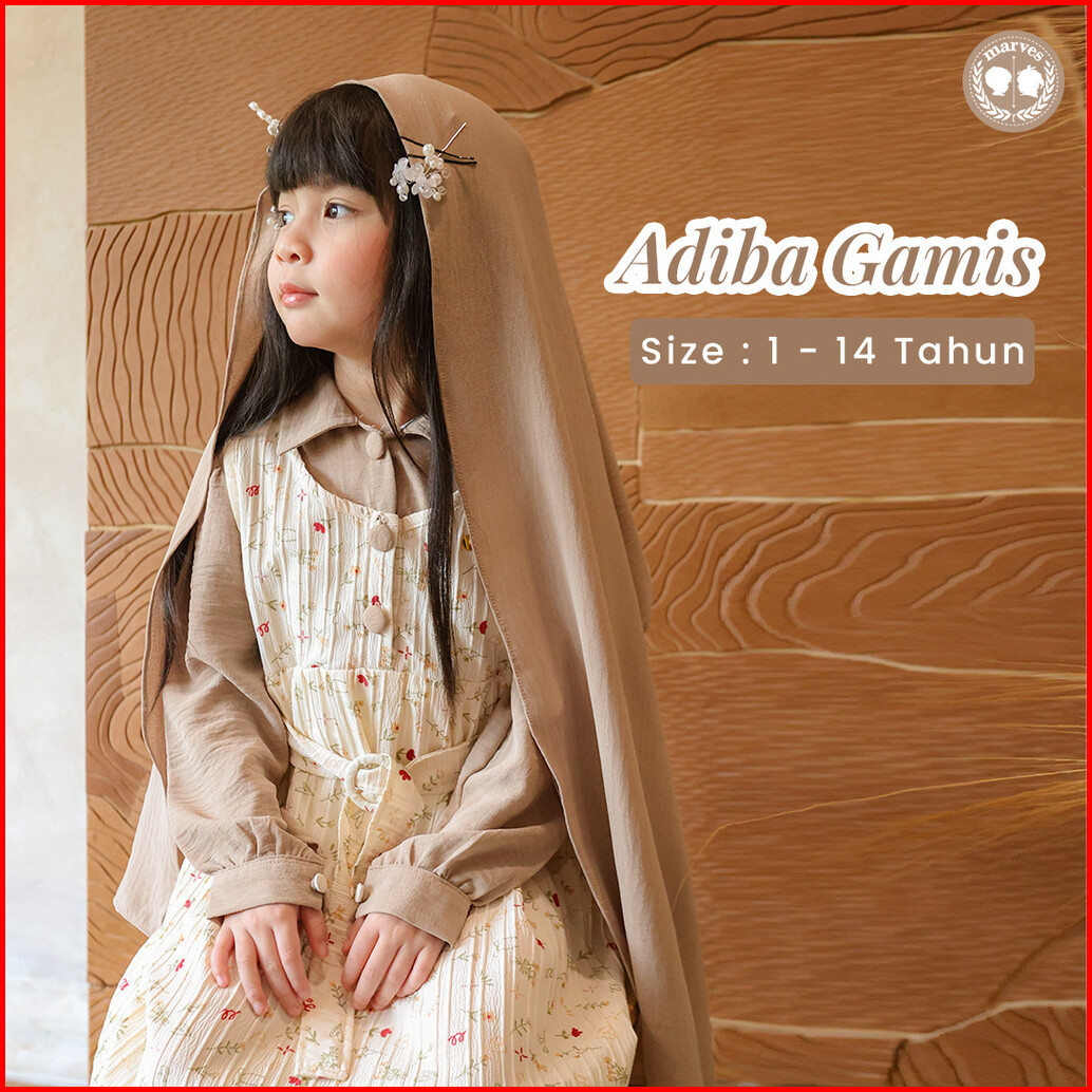 Marves Adiba Gamis Baju Muslim Anak Perempuan Bahan Crinkle Motif Bunga Usia 2 Hingga 14 Tahun