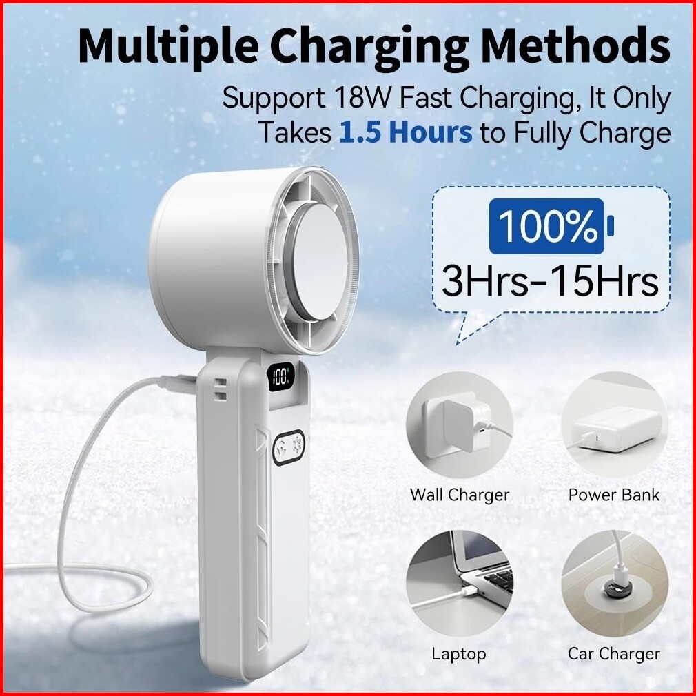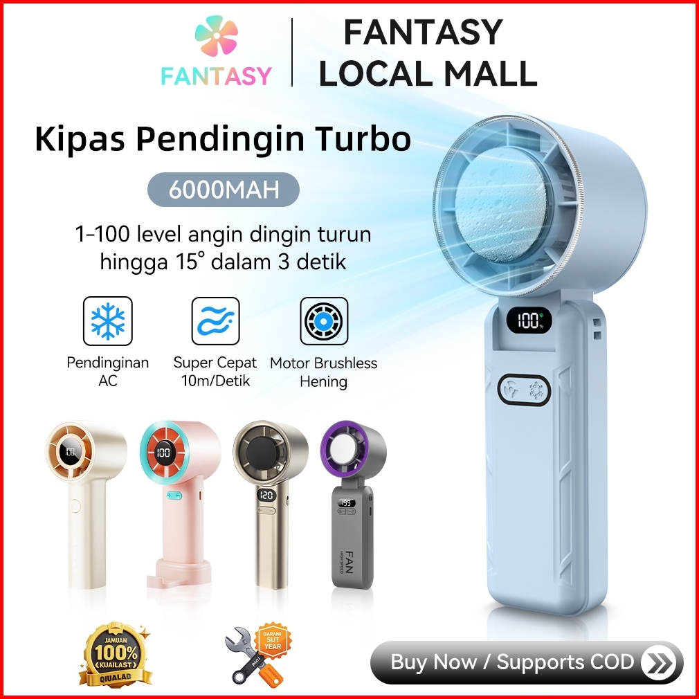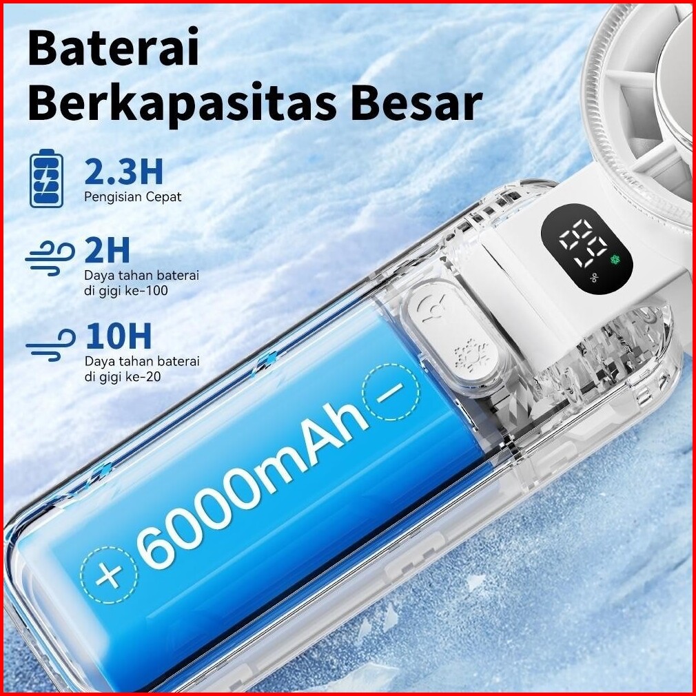 Kipas Angin Turbo Portable Mini 6000mah - Kipas Kecil Lipat Tahan Lama 15 Jam 5 Level Kecepatan Led Display Fast Charge