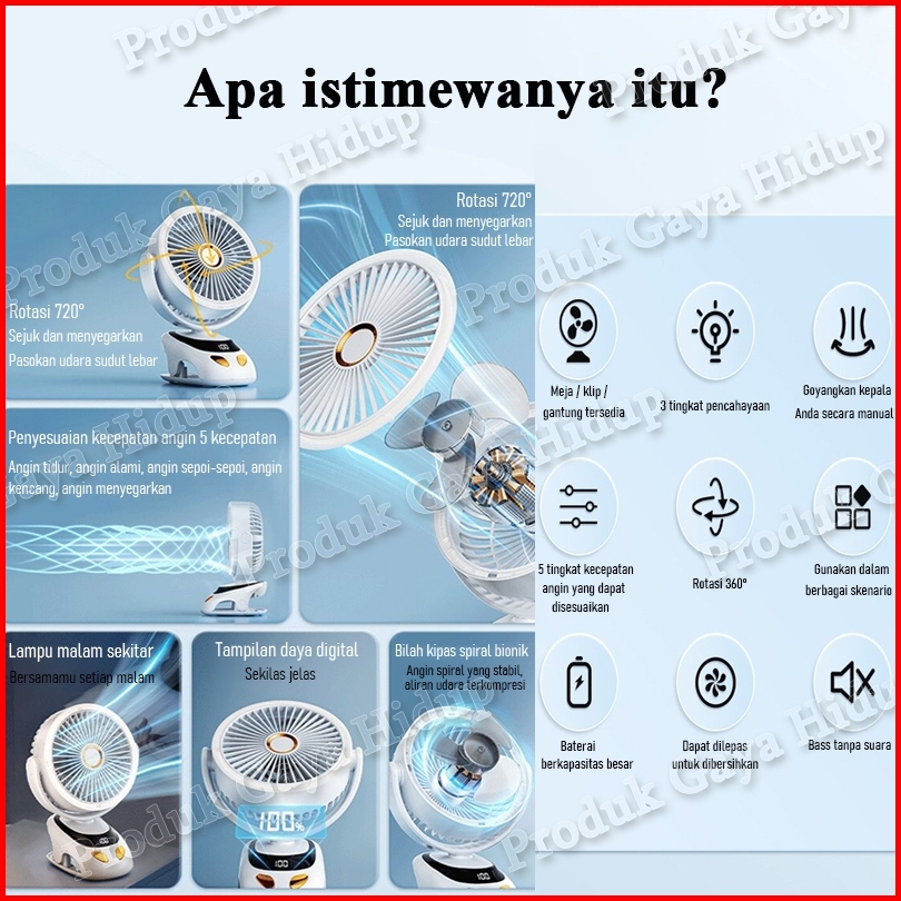 30000mah Kipas Klip Lampu Malam Multifungsi Kipas Mini Senyap Asrama Siswa Desktop Portabel Pengisi Daya Usb Lampu Malam