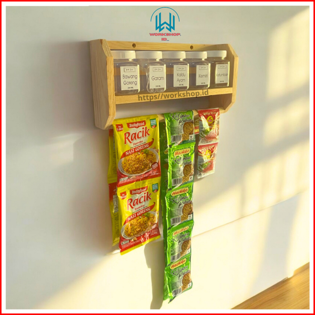Promo Rak Bumbu Dapur Estetik Plus Gantungan Sachet Gratis 5 Toples Stiker Bumbu Rg1