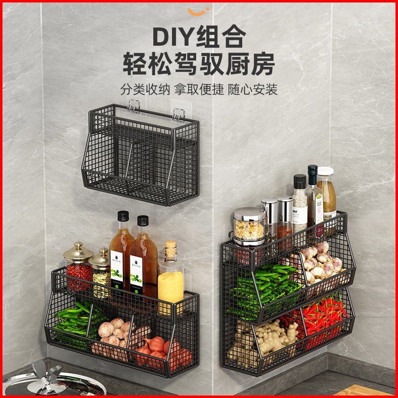 Rak Bawang Rak Bumbu Rak Keranjang Tempel Dinding Rak Dapur Anti Karat