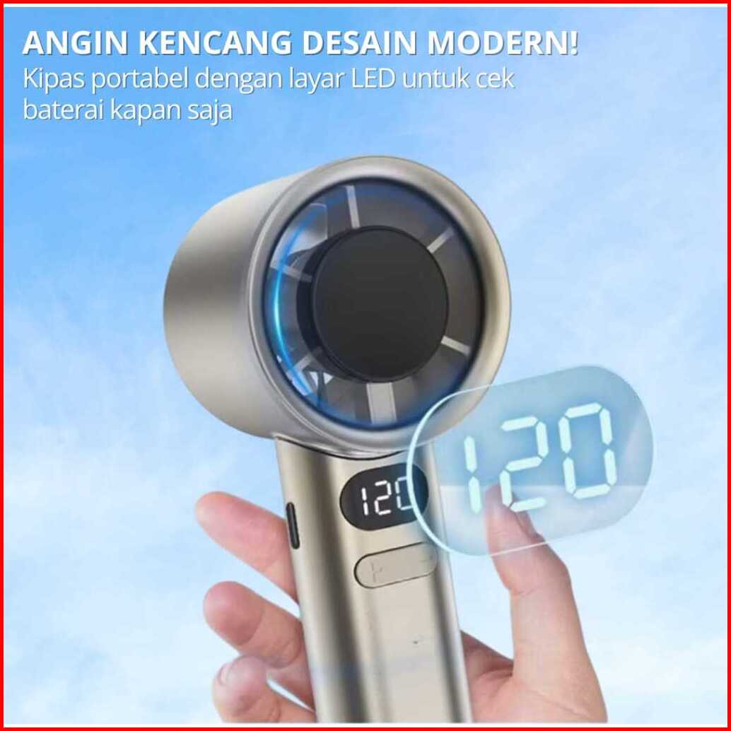 Kipas Angin Portable 15000mah Turbo Mini Tangan Genggam Mini Fan Tampilan Daya Lcd 120 Gigi