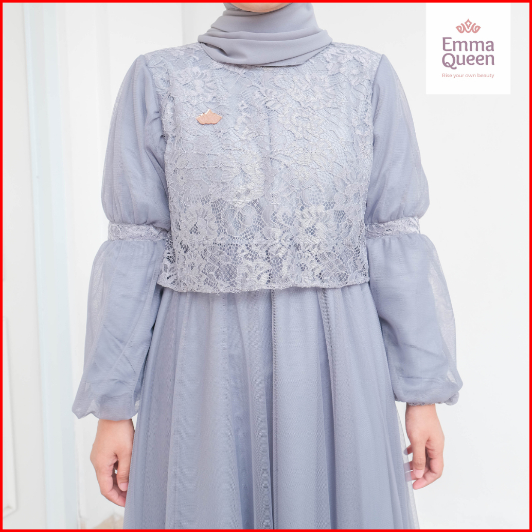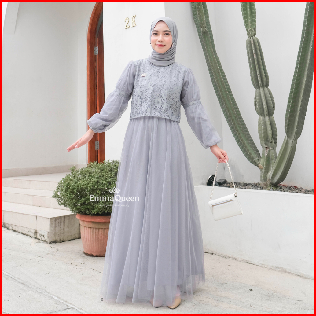 Emmaqueen - Dress Alin Gamis Mewah Elegan Terbaru 2025 Katun Kombin Tile Brukat Xs Xxl Busui Friendly