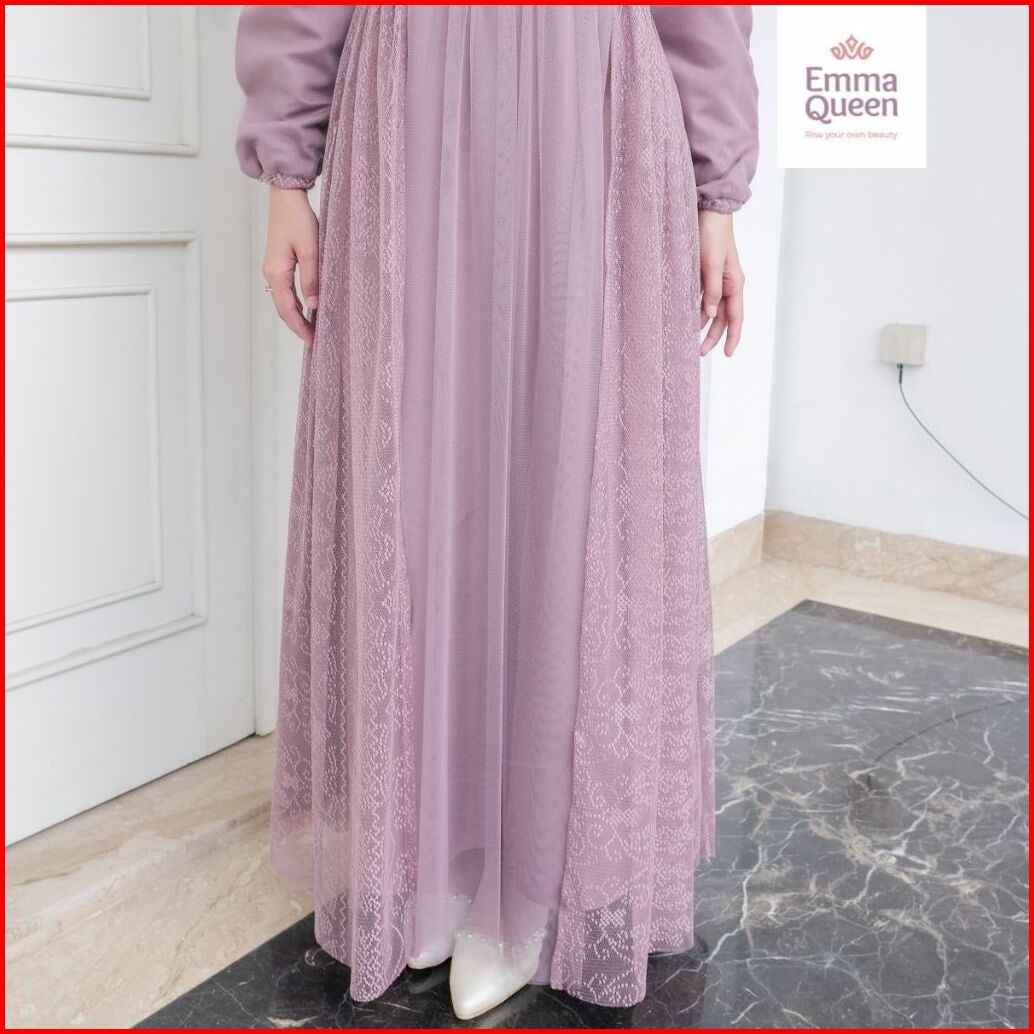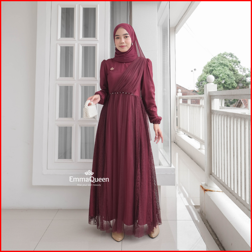 Emmaqueen - Dress Heidy Gamis Mewah Elegan Terbaru 2025 Kombinasi Tile Brukat Mix Mutiara Xs Xxl Busui