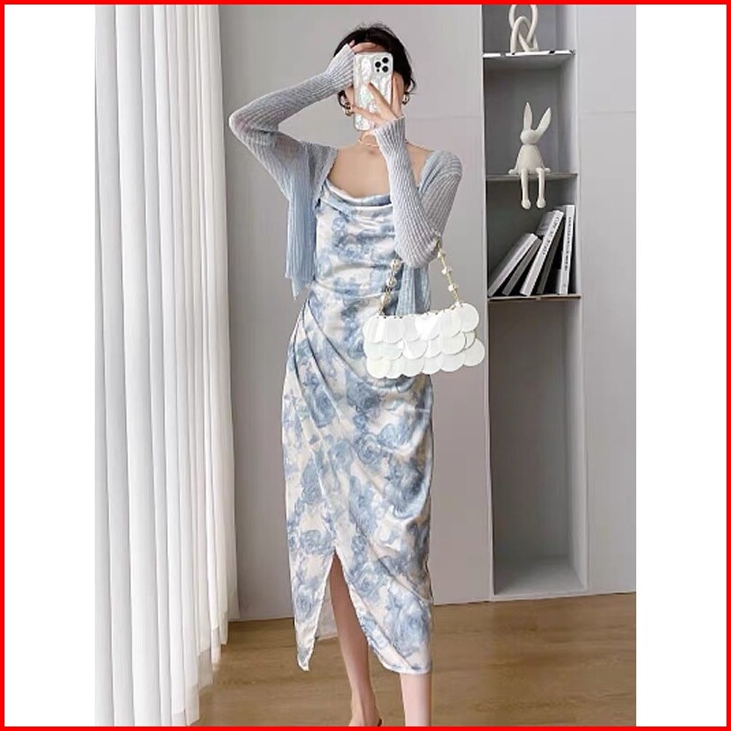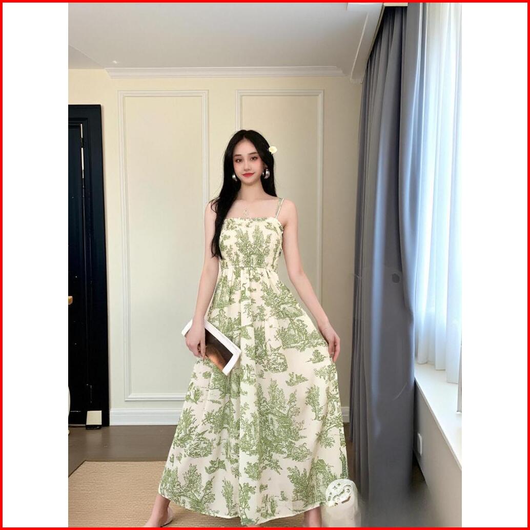 Miss Emita Midi Dress Hijau Wanita Kekinian Elegant Party Dress Tanpa Lengan Motif Bunga Korean Style Long Dress Cantik