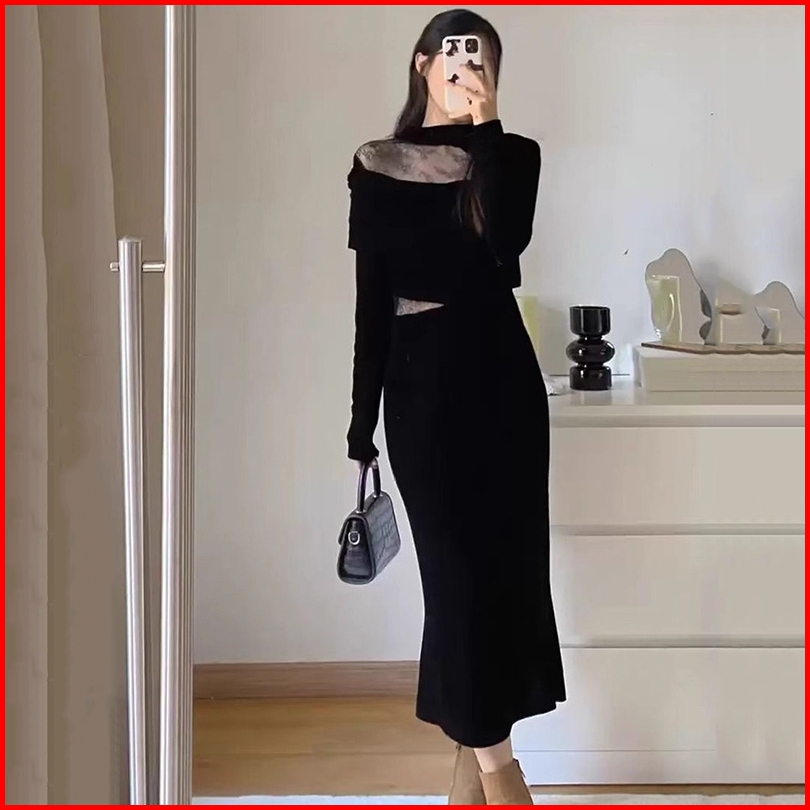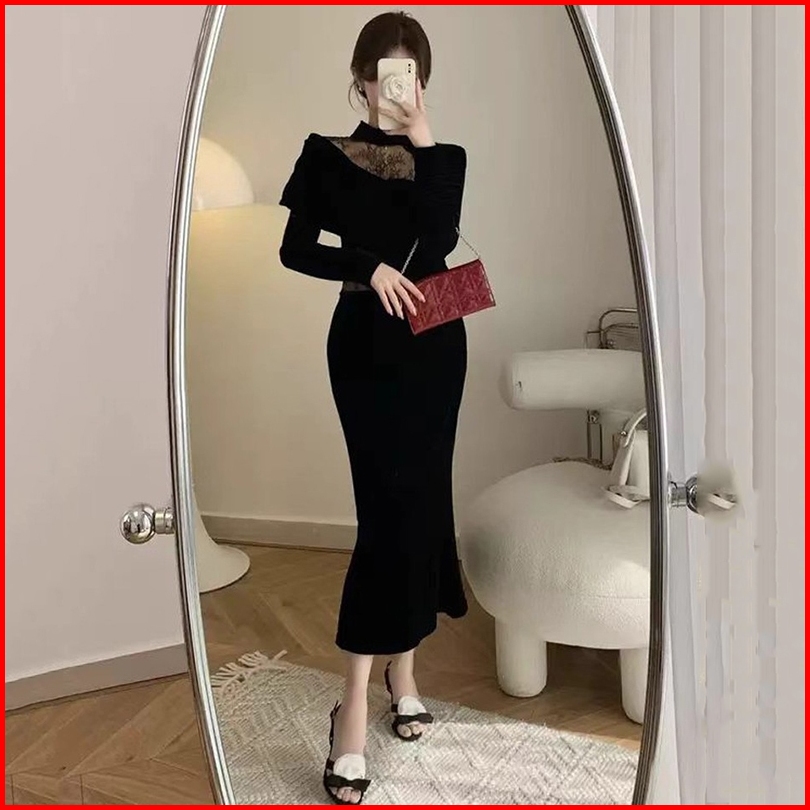 Newlan Qz254 Fit Dress Press Body Korean Long Dress Knit Bodycon Wanita Dress Basic Panjang Midi Wanita Rib Terusan Maxi