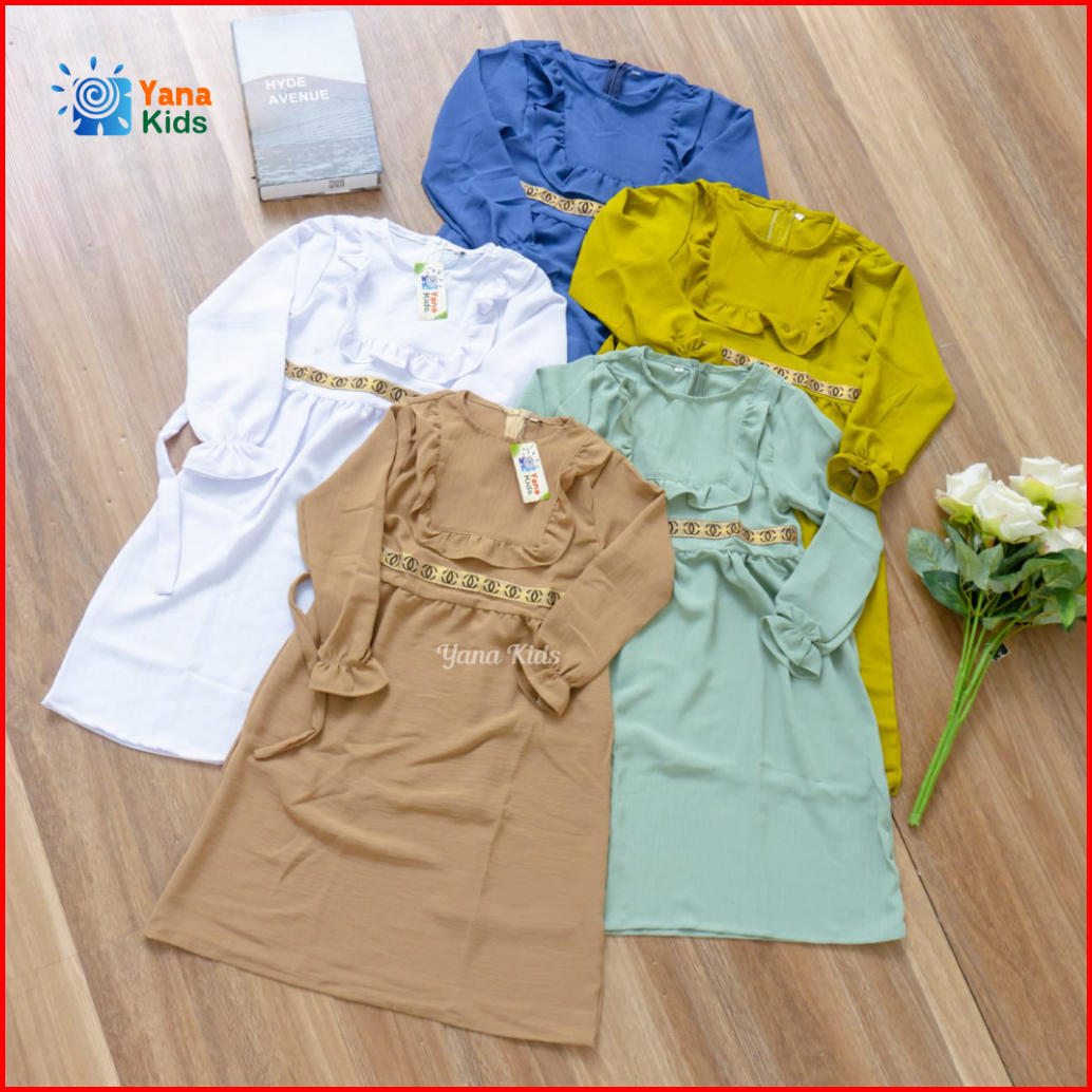 Yana Kids - Gamis Kiyara Crinkle Anak Perempuan Usia 3-9 Tahun Gamis Anak Perempuan Gamis Manasik Haji Putih