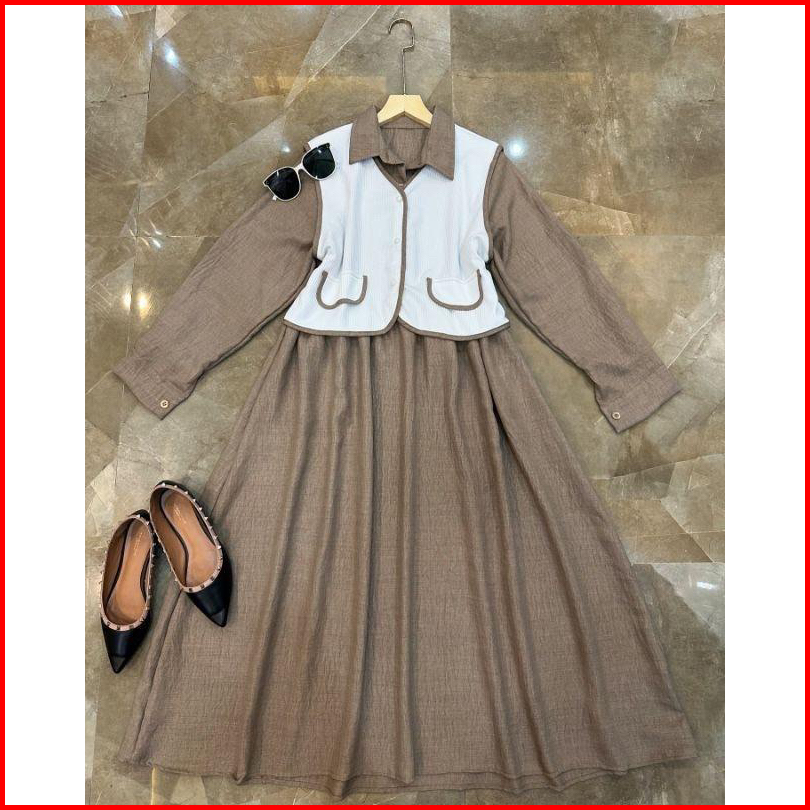 Davici Midi Dress Rompi Wanita Muslim Cringkle Polos Premium Ootd Casual Daily