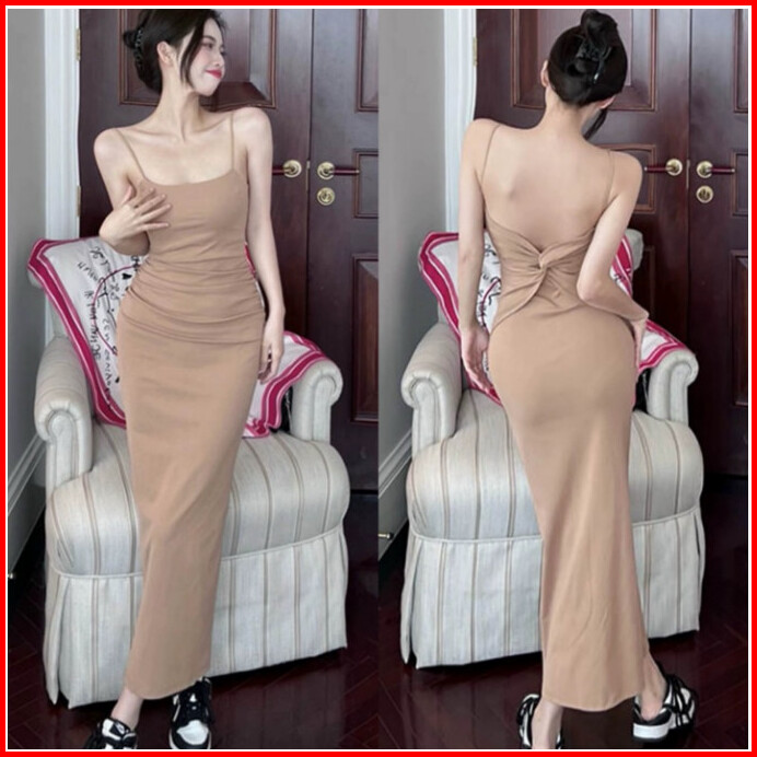 Emita Bloom Baju Long Dress Beige Press Body Cantik Ke Pantai Wanita Kekinian Terbaru 2025 Kondangan Wedding Dress Korea
