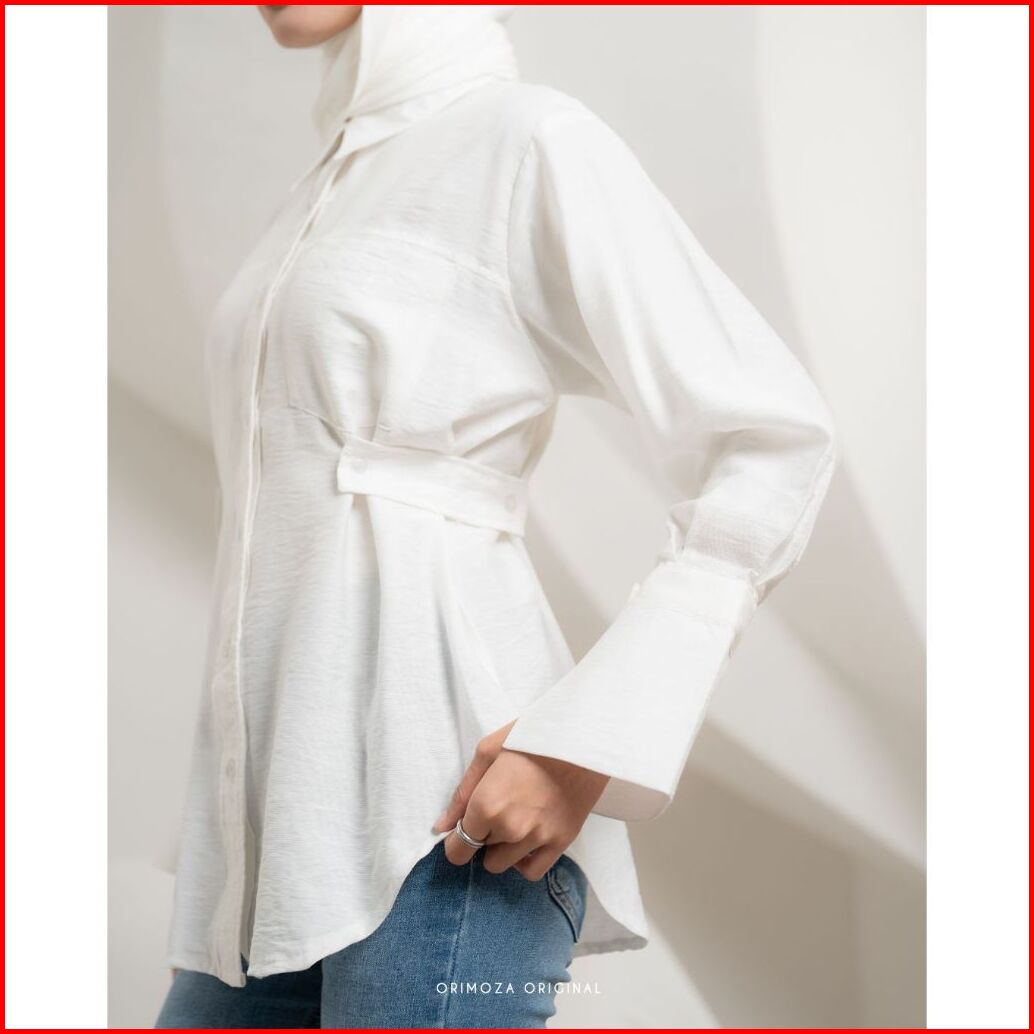 Orimoza Yofi Slim Fit Kemeja Blouse Lengan Big Cuff Polo Linen Impor