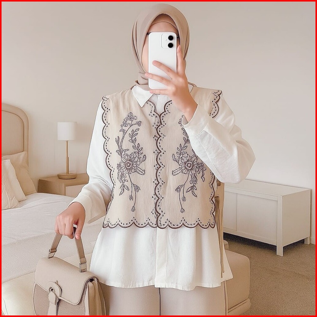 Femes Pinkan Top Blouse Linen Premium - Atasan Kemeja Rompi Tempel Bordil Airflow Modis Fit To Xl