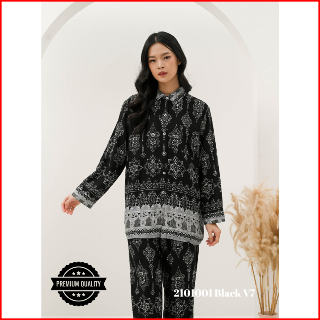 Cammomile 2101001 Stelan Piyama Tangan Panjang Corak Loungewear Batik V6