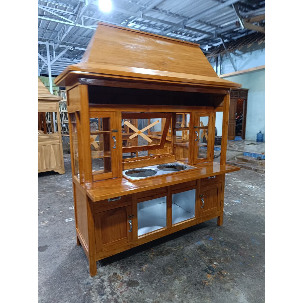 gerobak mie ayam bakso full kaca dua etalase model joglo siap jualan