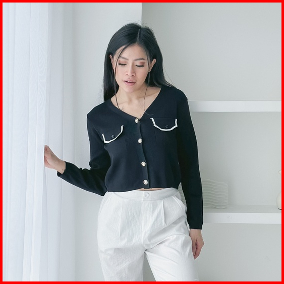 Exclusive In Only Cammomile Blus Cardigan Rajut Kantong 2 Lengan Panjang 2212013