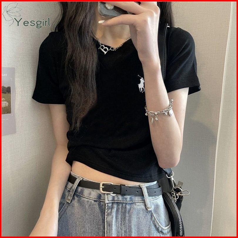Yesgirl T-shirt Crop Top Y2k Lengan Pendek Kaos Wanita Crop Top Mode Hip-hop Korea Kaus Crop Wanita Baju Atasan Wanita T