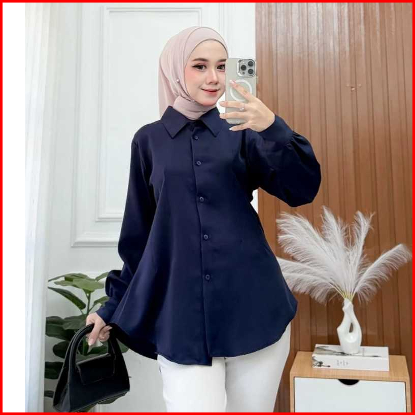 Kemeja Wanita Body Fit Atasan Blouse Polos Lengan Panjang Tali Samping Formal X Kasual Terbaru