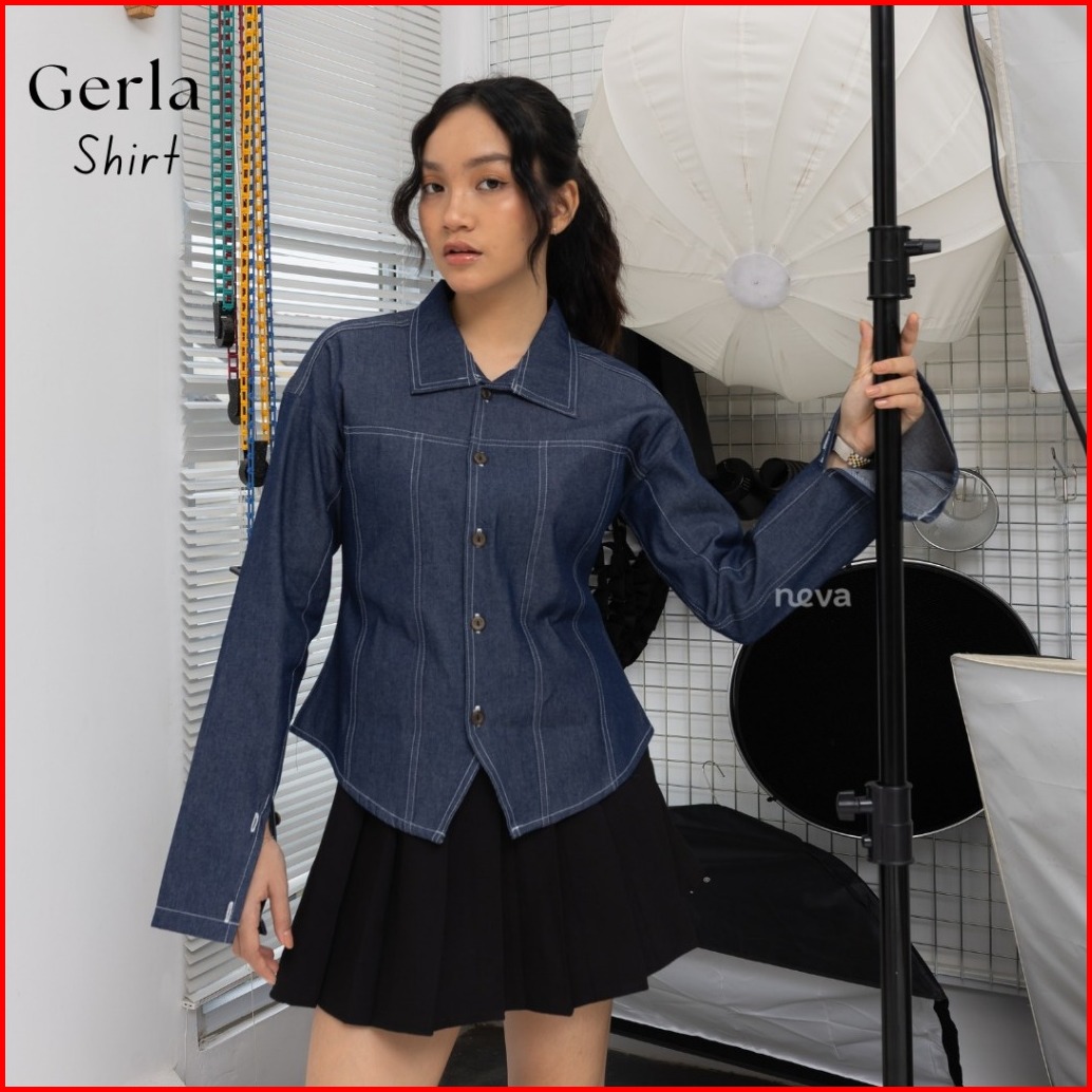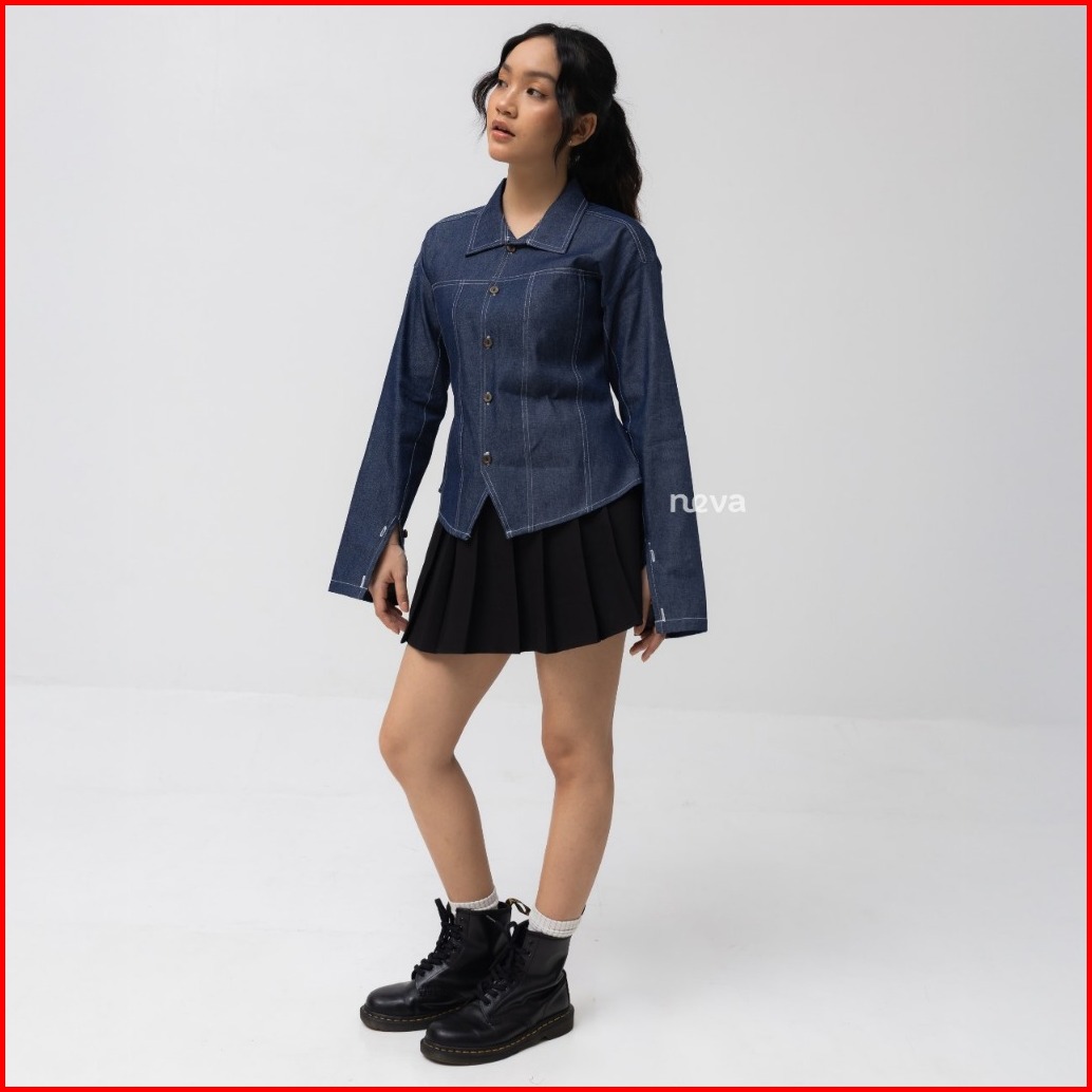 Neva Style - Gerla Denim Fitted Atasan Wanita Kemeja Kerja Casual Look Wispie Jeans Fit Body