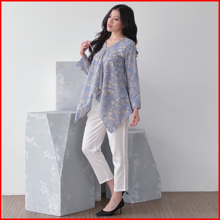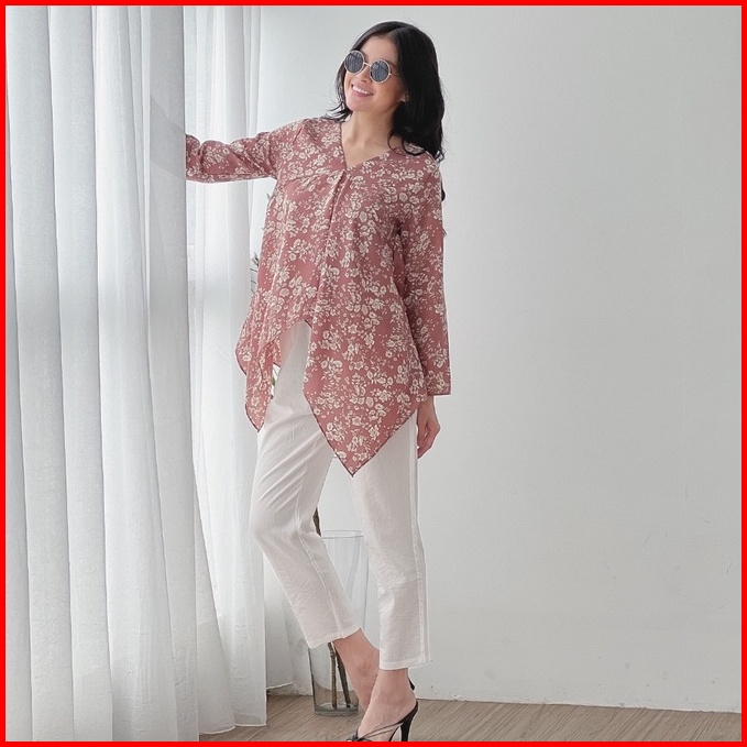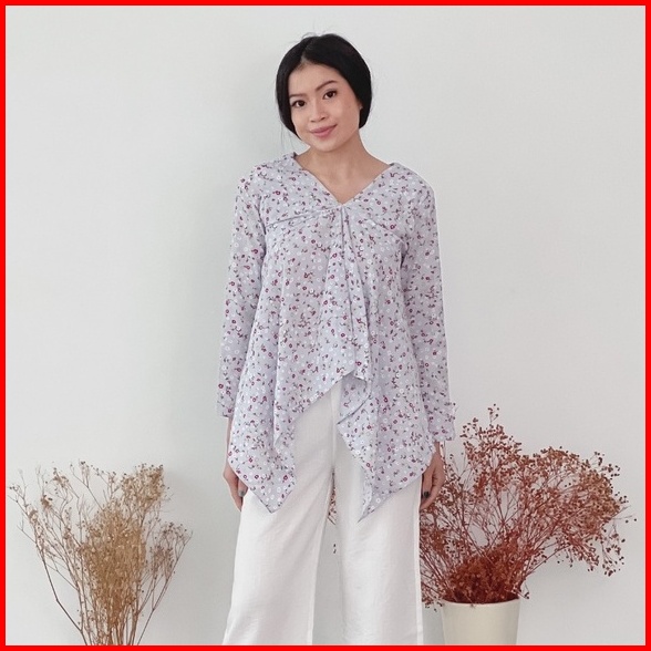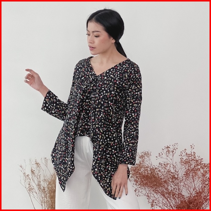 Cammomile 1807010sp Af Baju Wanita Blouse Atasan Wanita Motif Corak Bunga Lengan Panjang 1904029