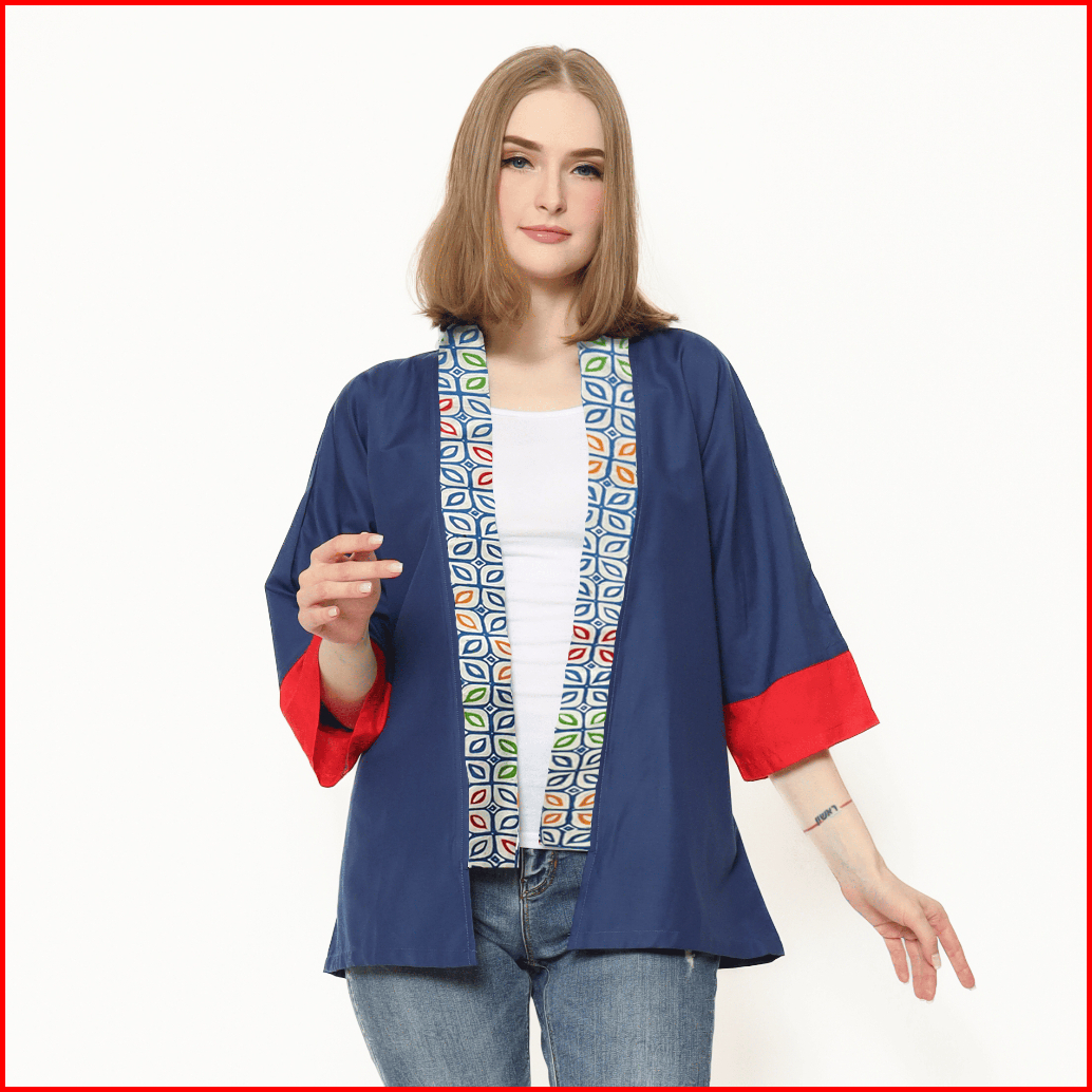 Blazer Batik Wanita - Atasan Batik - Bhatara Batik Christina - Outer Batik Modern Lengan Pendek