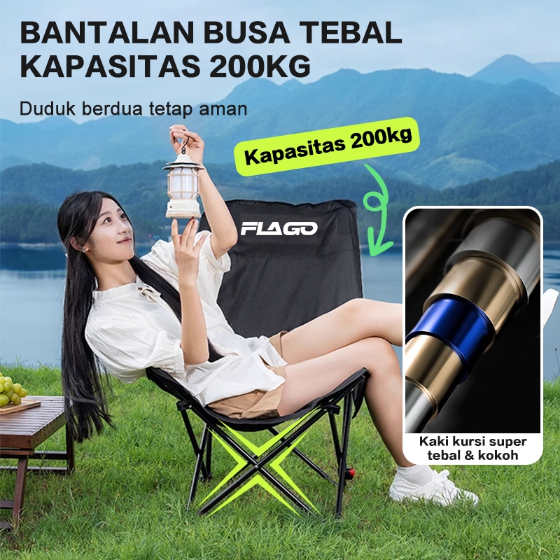 FLAGO Kursi Lipat Sandaran Tinggi Dengan Sandaran Kepala Busa Kursi Camping Kuat Lebar Tebal Beban 200kg