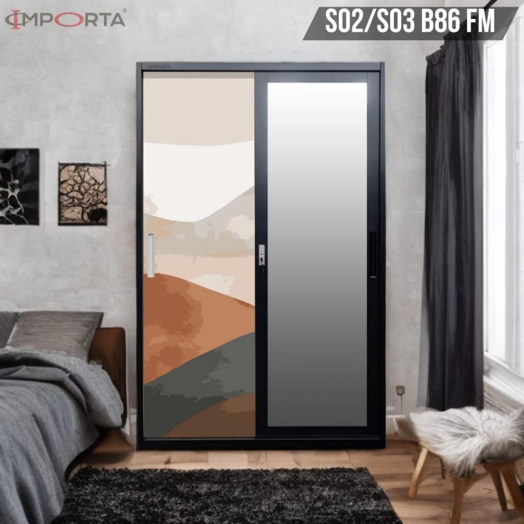 Lemari Pakaian Besi 2 Pintu Sliding Jumbo | Lemari Baju Sleding Cermin Cuci Gudang