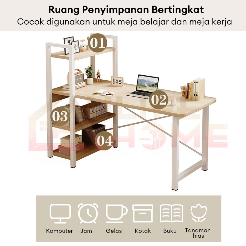 Meja Komputer Dengan Rak Buku Meja Kerja Meja belajar Aesthetic Meja Kantor Serbaguna