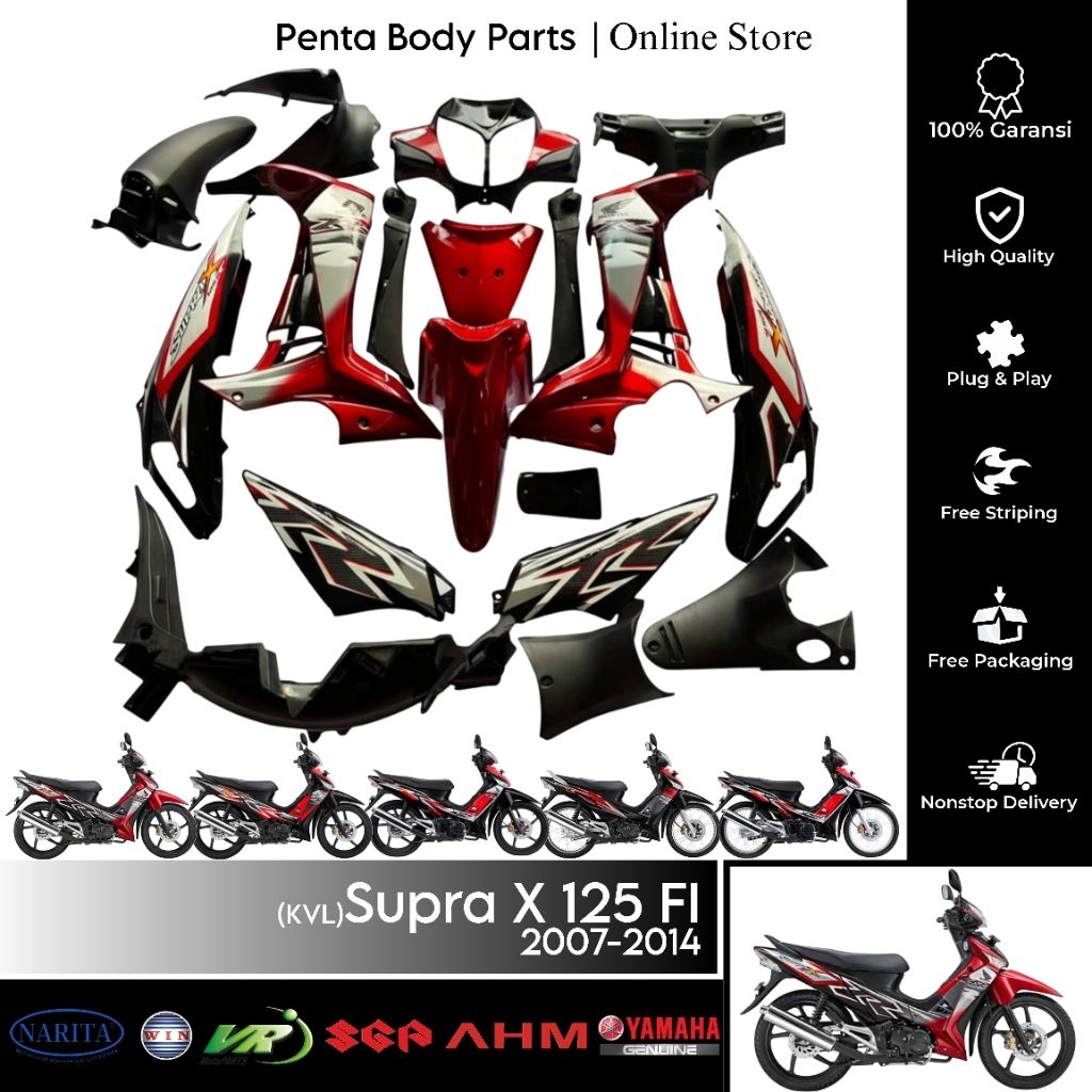 Full Set Cover Body Honda Supra X 125 (KVL) - Ful Bodi Supra X 125 Batman Plus Lampu dan Baut 2007 - 2014 Warna Hitam Putih Merah Biru Hijau