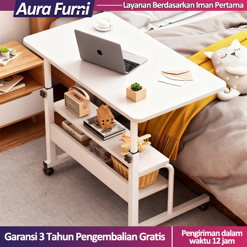 Meja Laptop Study Table Adjustable Double Layer Adjustable Bed Side Table Meja Kerja Belajar Serbaguna