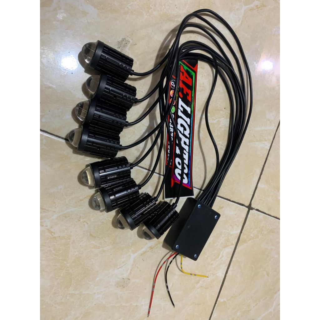 PAKET 8 lampu sorot/Tembak/gril + modul 10 mode otomatis 1 mode manual 2 fungsi 12/24 volt