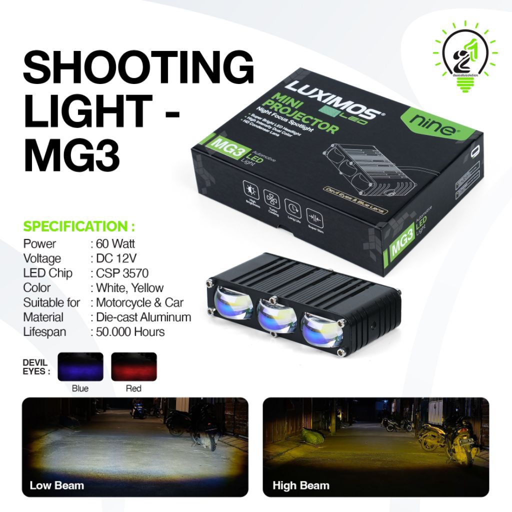 LAMPU TEMBAK MINI LASER SLIM GRILL MOBIL MOTOR PUTIH KUNING PLUS DEVIL EYE NINE LUXIMOS MG3 60 WATT