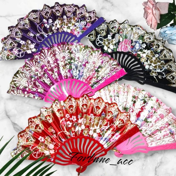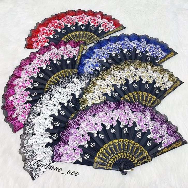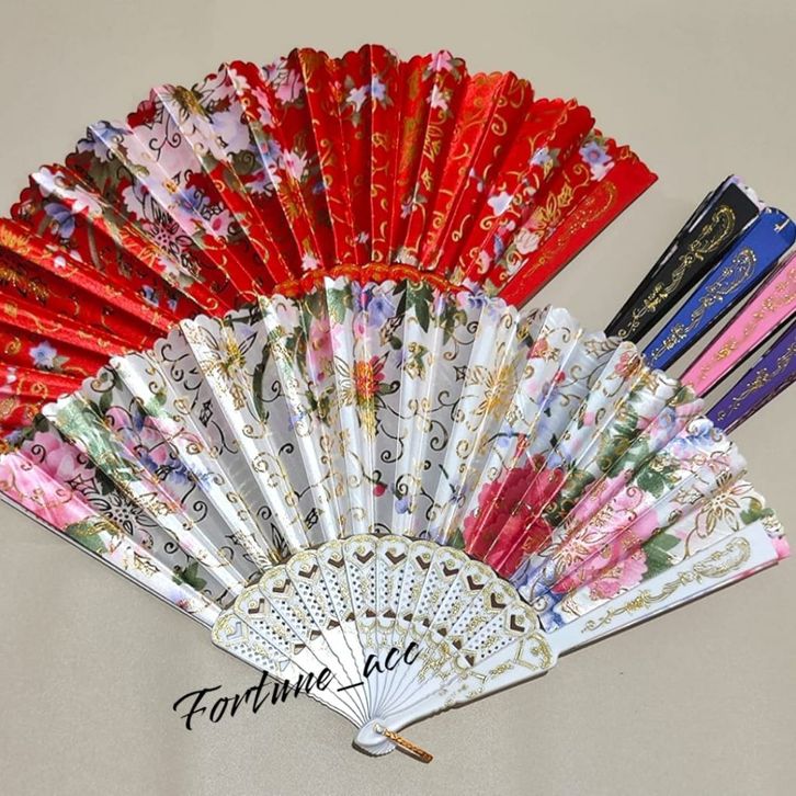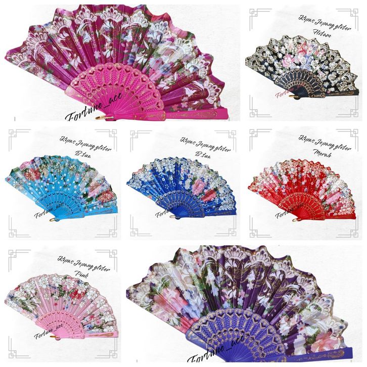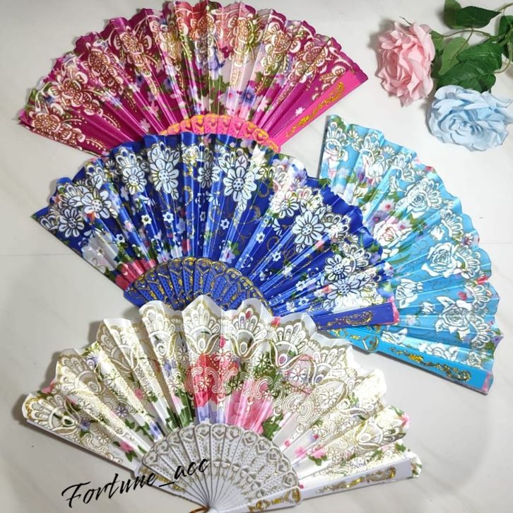 KIPAS JEPANG GLITER / KIPAS TANGAN LIPAT BUNGA / KIPAS LIPAT TANGAN GAGANG/ KIPAS SOUVENIR