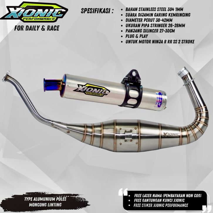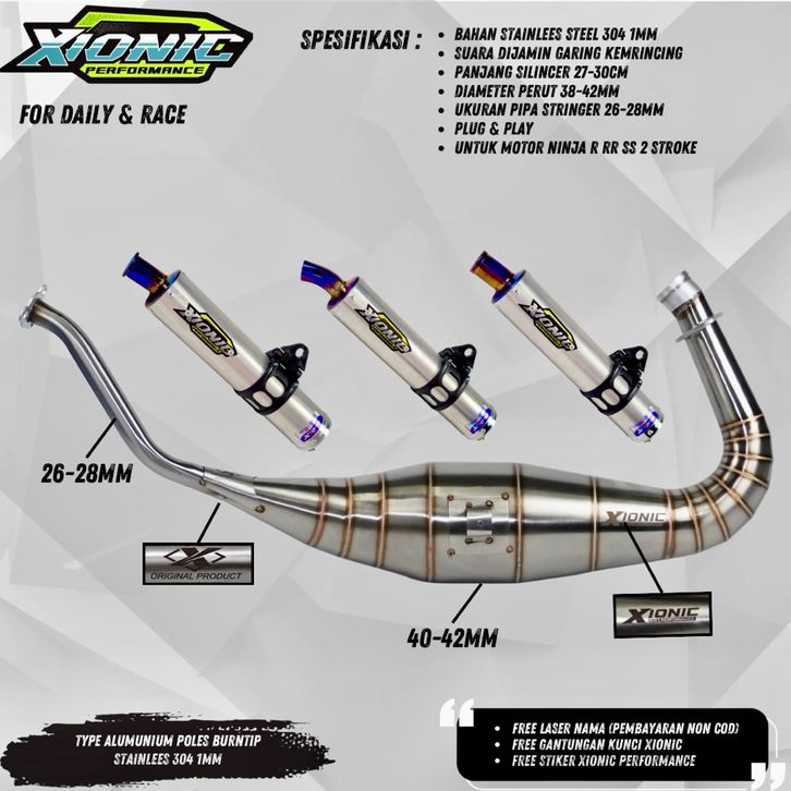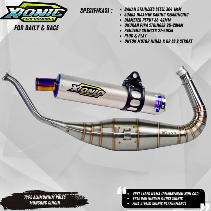 Knalpot Ninja R RR SS 2Tak Xionic Performance Alumunium Burntip Stainlees 304 1MM