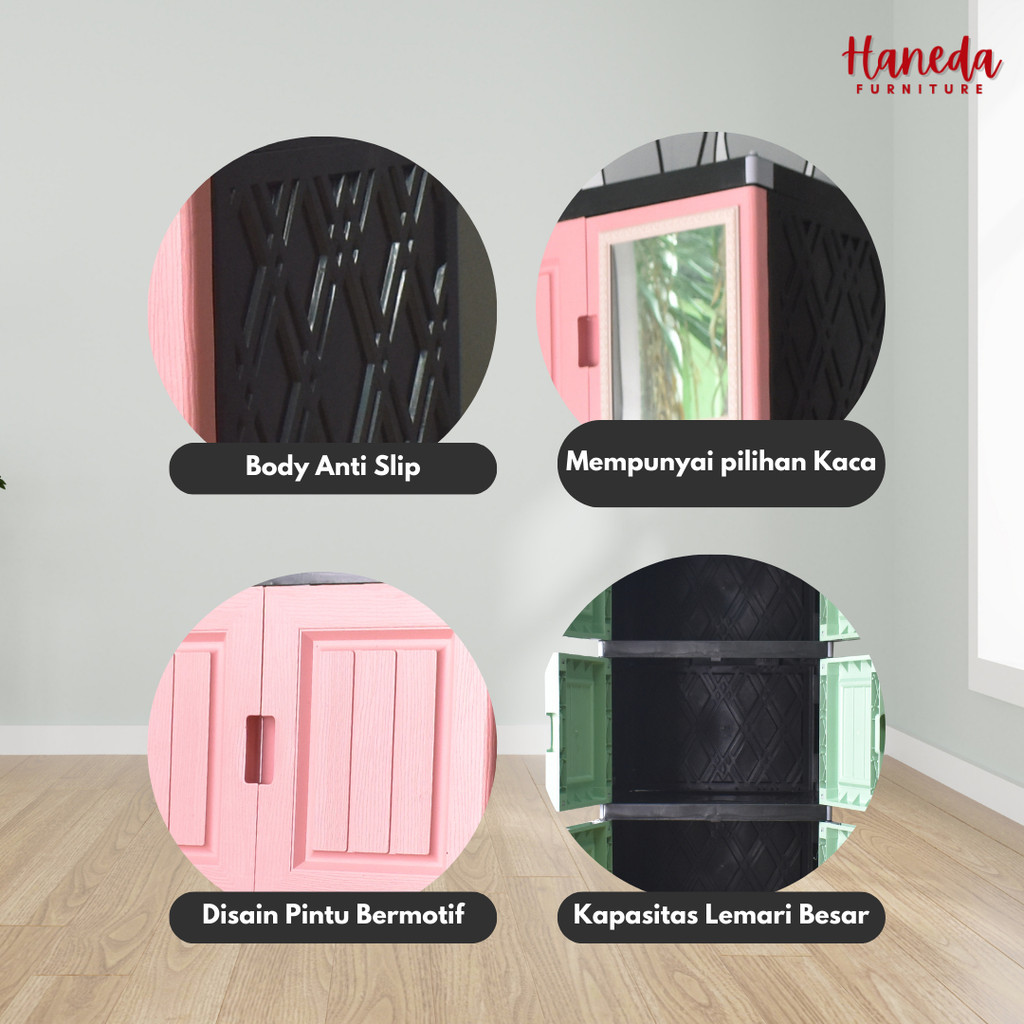 HANEDA Lemari Pakaian MIZCA CLASSIC Lemari Susun Lemari cermin Plastik Rak baju Lemari serbaguna