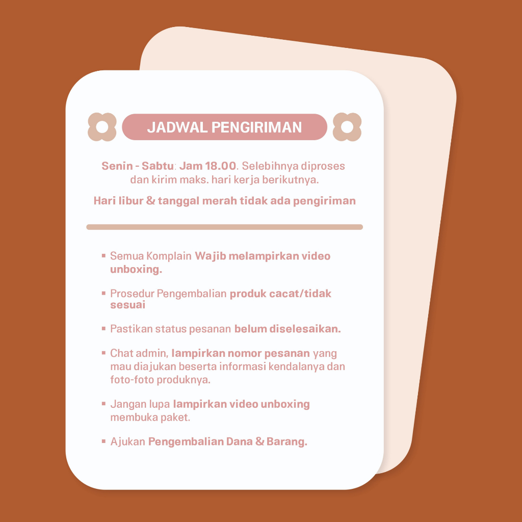 HITAM, COKLAT, CREAM, PINK, HITAM+EXTRA PACKING, COKLAT+EXTRA PACKING, CREAM +EXTRA PACKING, PINK+EXTRA PACKING