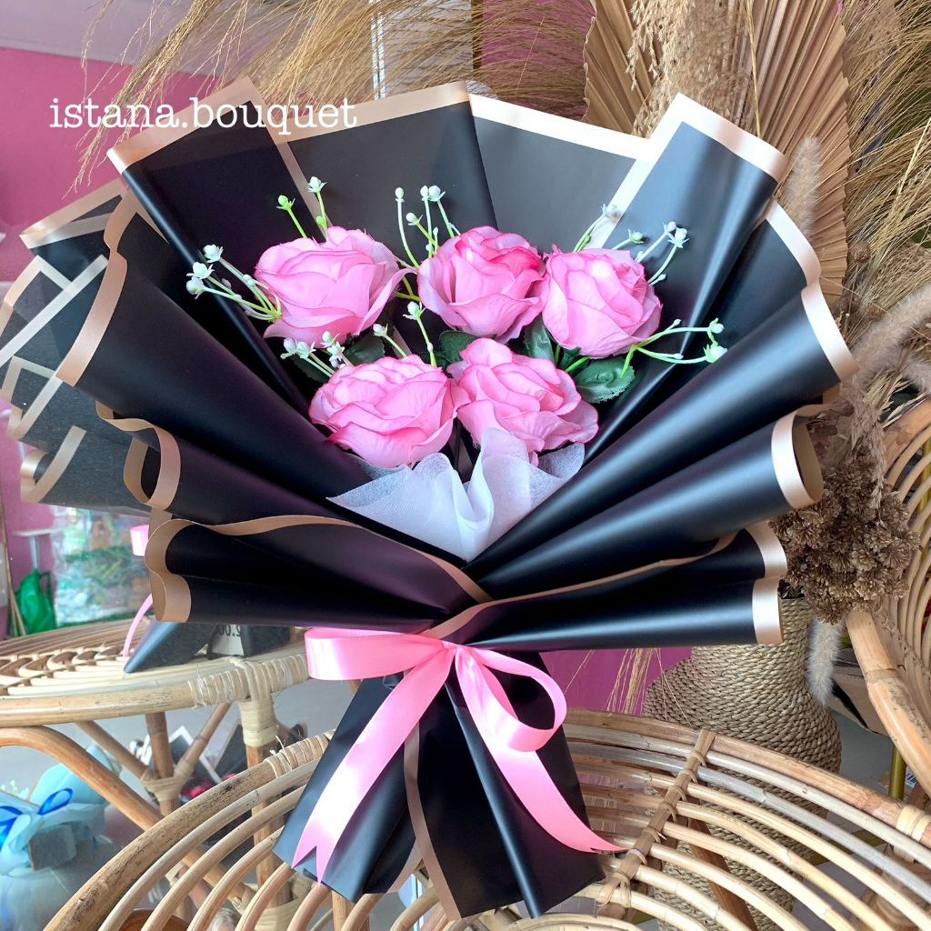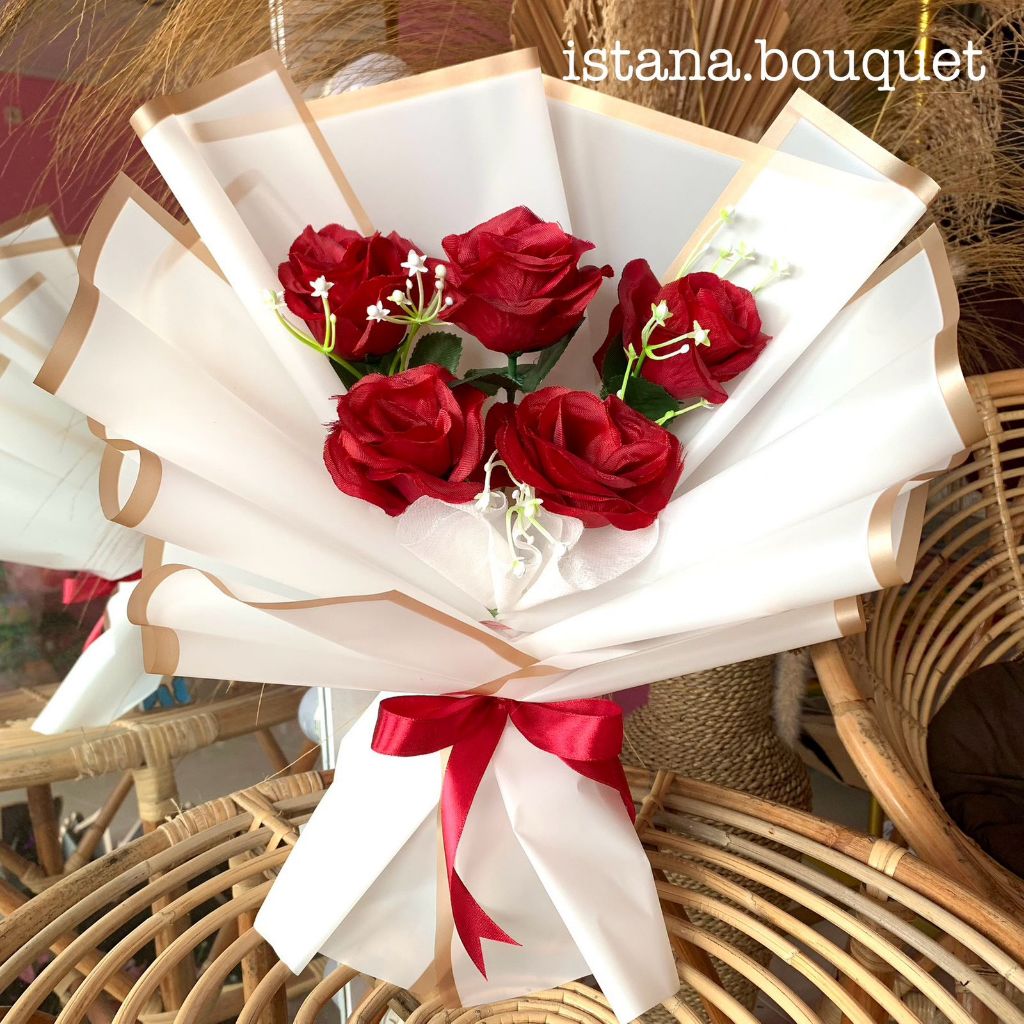 Buket bunga 5 mawar premium free kardus packing | buket bunga wisuda,ulang tahun,tunangan