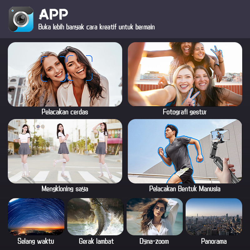 TNW C16 MULTI-FUNCTIONAL AUTO FACE TRACKING TRIPOD AI BLUETOOTH GIMBAL STABILIZER 360° ROTATION SELFIE STICK TONGSIS DENGAN LAMPU