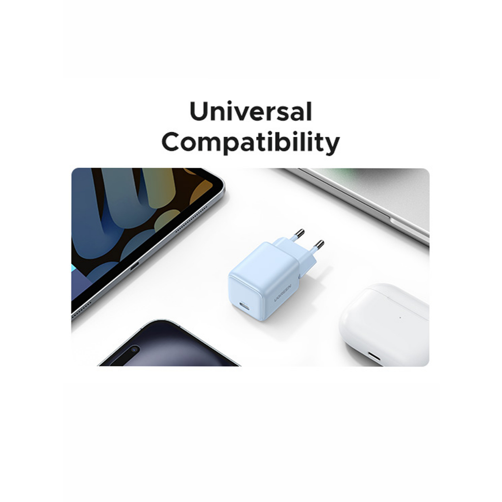 UGREEN KEPALA ADAPTOR CHARGER 20W GAN N PD FAST CHARGING TYPE C FOR IPHONE IPAD SAMSUNG ANDROID