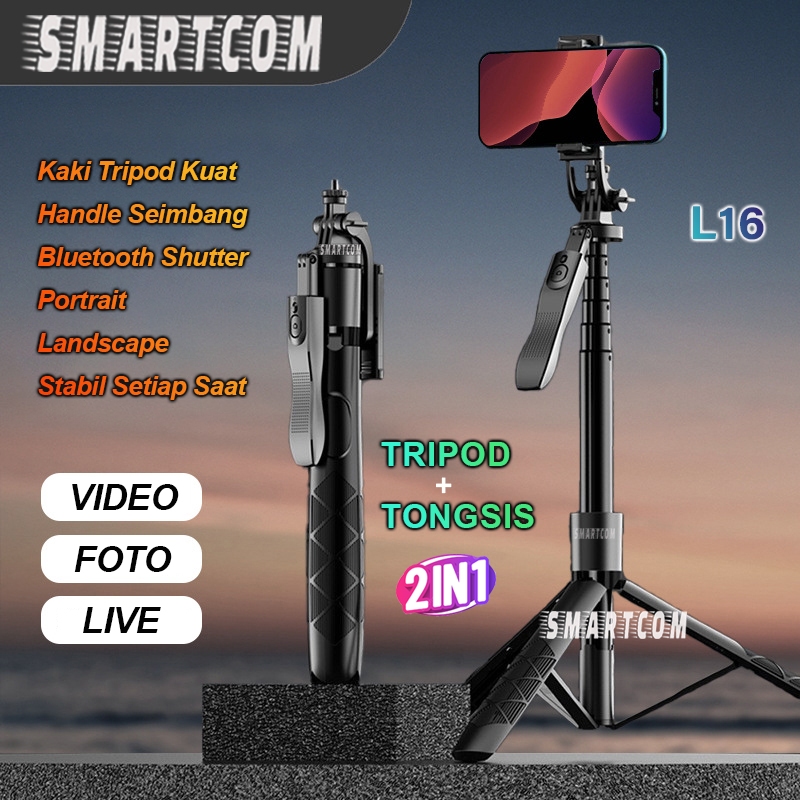 SMARTCOM TRIPOD TONGSIS L16 BLUETOOTH HAND STABILIZER HP GOPRO KAMERA L12 / L15 / L16 / Y19 / P185
